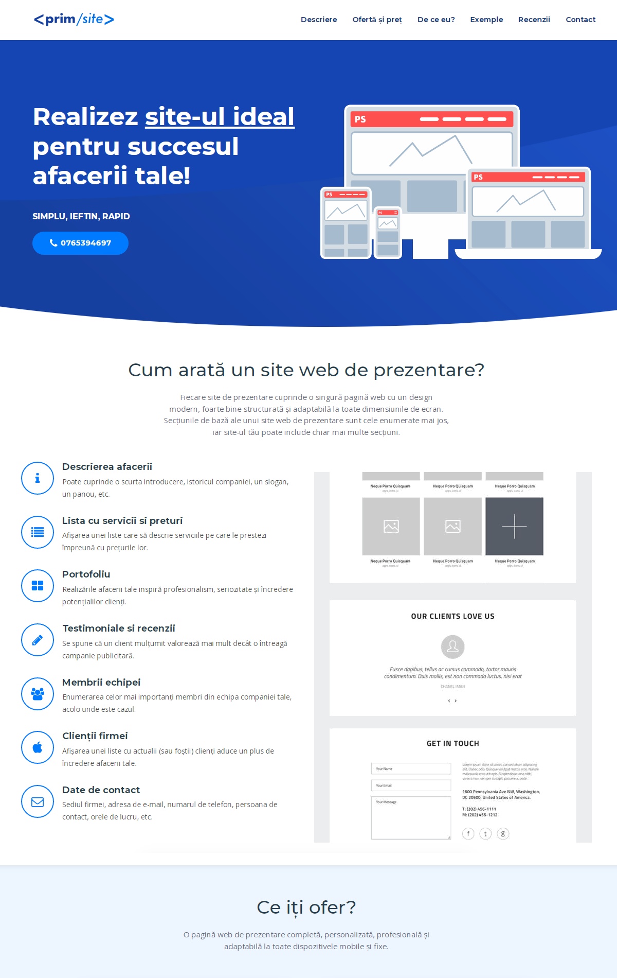 O pagină web de prezentare completă, personalizată, profesională și adaptabilă la toate dispozitivele mobile și fixe.