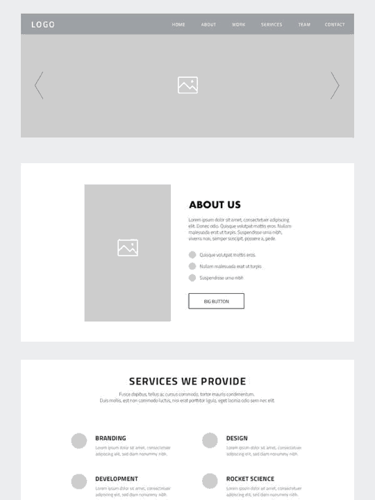 Fiecare site de prezentare cuprinde o singură pagină web cu un design modern, foarte bine structurată și adaptabilă la toate dimensiunile de ecran. Secțiunile de bază ale unui site web de prezentare sunt cele enumerate mai jos, iar site-ul tău poate include chiar mai multe secțiuni.
